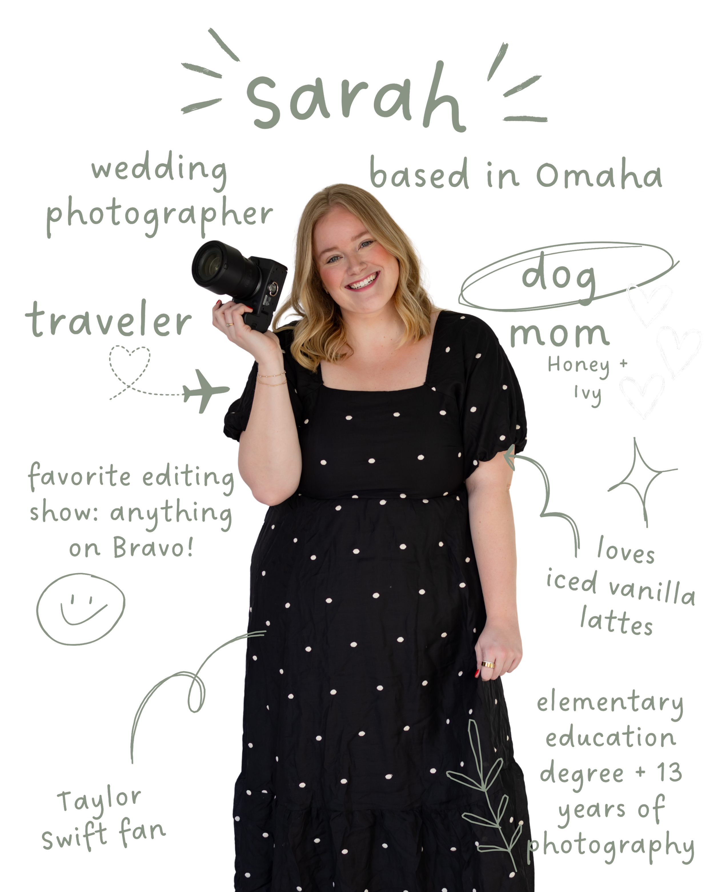 I first picked up a camera in my high school yearbook class and never really put it back down. After earning both my bachelor’s and master’s degrees in elementary education, I spent six amazing years teaching in Omaha. Eventually, I felt the pull to take a leap into photography full time, and it has been the most rewarding decision. I’m so grateful for the flexibility this career brings and for the privilege of being invited into people’s happiest, most meaningful moments.